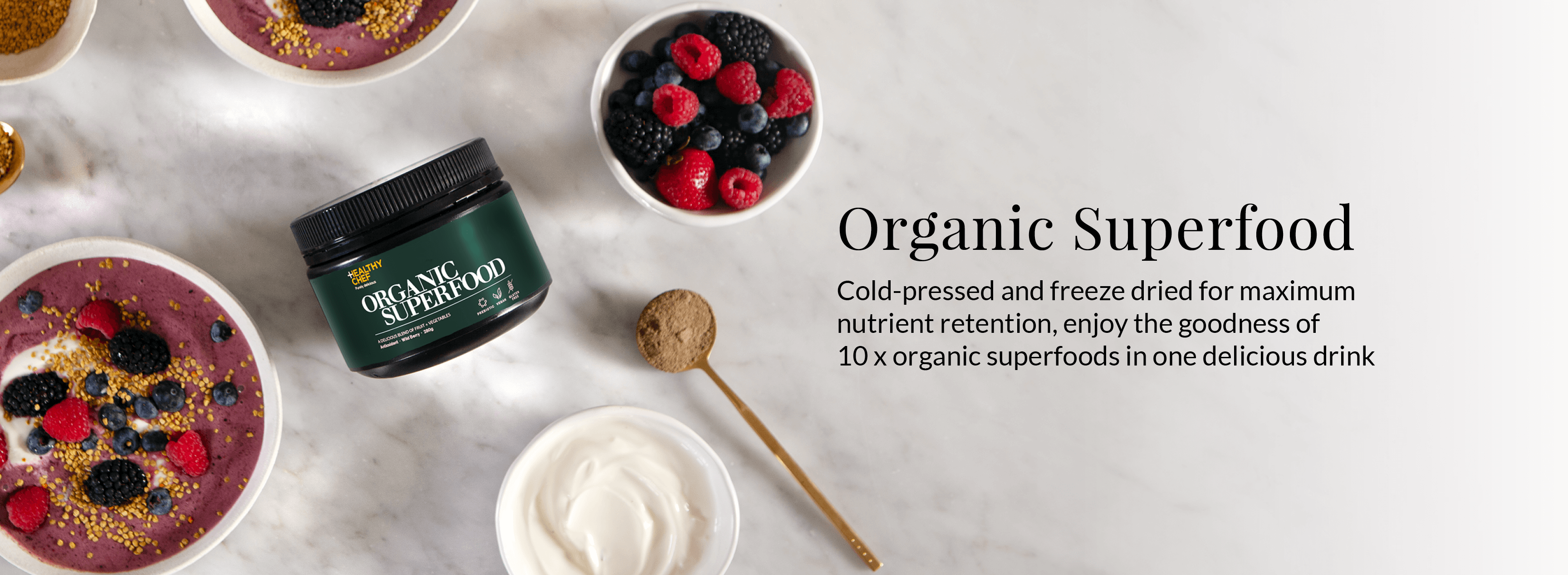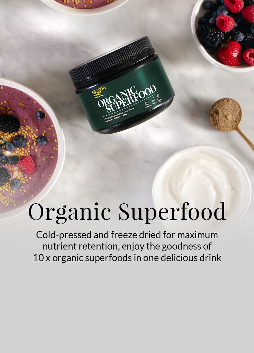 The Healthy Chef is an Australian nutrition + supplement range made from pure wholefoods – just as nature intended! We believe wholefood-based nutrition is essential for optimum health, fitness, and wellbeing.